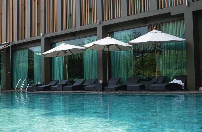 Our luxury hotel pools offer a range of services including poolside food and beverage service, cabana rentals, towel service, and expert pool attendants to ensure guests have a relaxing and enjoyable experience. Swim-up bars, water activities, and stunning views also elevate the overall pool experience for our guests. We prioritize cleanliness, comfort, and exceptional service to create a luxurious and rejuvenating pool environment for all our guests to enjoy.